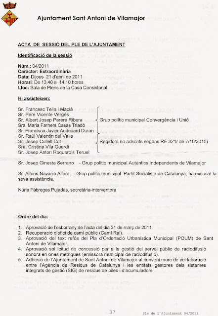 Els punts de les propostes d'altres partits tots son molt similars, ara bé, el que em va xocar fou la proposta feta des de CanVi, en que volen limitar la superfície dels establiments comercials. Aleshores jo els hi vaig contestar que ells (SI) havien aprovat el POUM en el any 2011, el qual dona plena llibertat a establir locals comercials de gran format. Raül Valentín va manifestar que ells no ho havien aprovat. Els documents adjunts proven la meva afirmació i, pel que sembla potser no es va saber prou bé el que s'aprovava, ja que l'actual text, permet construir dins la trama urbana, qualsevol tipus de superfície comercial, es a dir que si un Mercadona, Consum o un Bonpreu, etc.. es volen instal·lar en el nostre municipi, mentre ho facin dins la trama urbana no hi ha cap restricció.